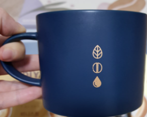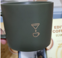 EDIYA 커피뿐만 아니라 위 그림의 블루색, 카키색상의 머그컵도 함께 딸려오는데 개인적으로는 블루 색상 머그컵이 더 맘에 들어요! 디자인은 똑같지만 색상이 다르고, 또 컵의 새겨진 문양이 다른데요 카키색상의 머그컵은 커피를 컵에 내리는 문양이 새겨져 있고 블루색상의 경우는 잎과 물 그리고 커피가 새겨져 있어서 심플하지만 고급스러운 느낌을 줘요.