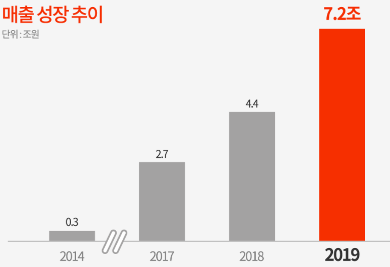 2017년부터 2019년까지 꾸준히 쿠팡 매출이 증가하고 있어요