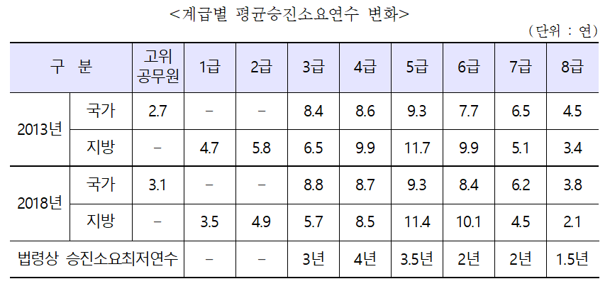 1. 9급 에서 7급까지 진급하는데 소요되는 평균 시간 (국가직, 지방직 비교)