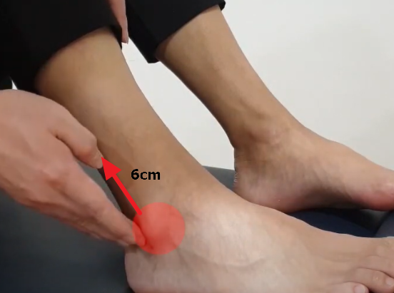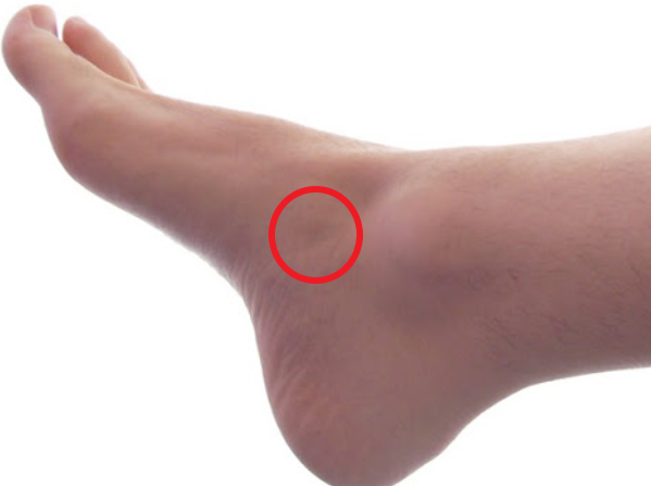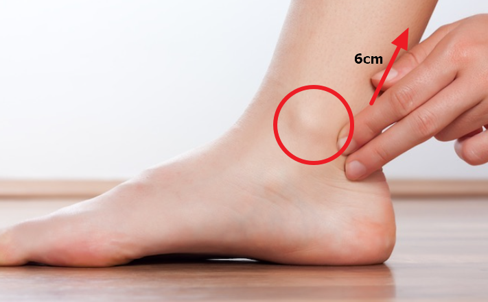 아래 그림처럼 발목의 족외과 부위를 만졌을 때 통증이 있는지 확인해야합니다. 그리고 족외과 위로부터 6cm 부위인 비골로 만져보았을때 통증이 심한지 확인합니다.