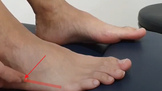 2번째 발목 바깥쪽에서 체크해야할 곳은 다섯번째 발가락 아래에 위치한 중족골의 끝지점인데요, 이 5번 중족골의 기저부 베이스가 툭튀어 나와있는데 여기를 만졌을 때 통증이 심하다면 발목 골절 일 확률이 높습니다.