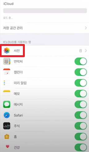 설정 > icloud > 사진 을 차례로 눌러줍니다. 아래 그림에 나와있으니 보고 클릭면 하시면 돼요.