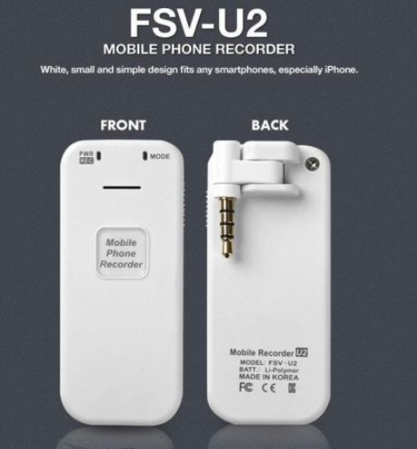아이폰 통화중 녹음 을 가능하게 해주는 외부기기 (하드웨어)를 소개해드리겠습니다. Forus FSV-U2 라는 제품인데요, 인터넷에 검색하면 나옵니다. 3.5 mm 이어폰 단자에 꽂아 사용하는 레코더인데요, FSV-U2 자체에 스피커와 마이크 둘다 있어서 통화 내용이 자동으로 저장되는 방식입니다.