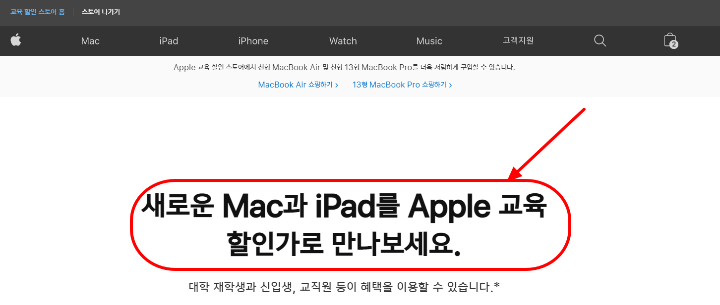 맥북프로교육할인 뿐만 아니라 그냥 맥북에어, 아이맥, 아이맥프로, 맥프로, 맥미니 제품에도 할인을 받을 수 있습니다.