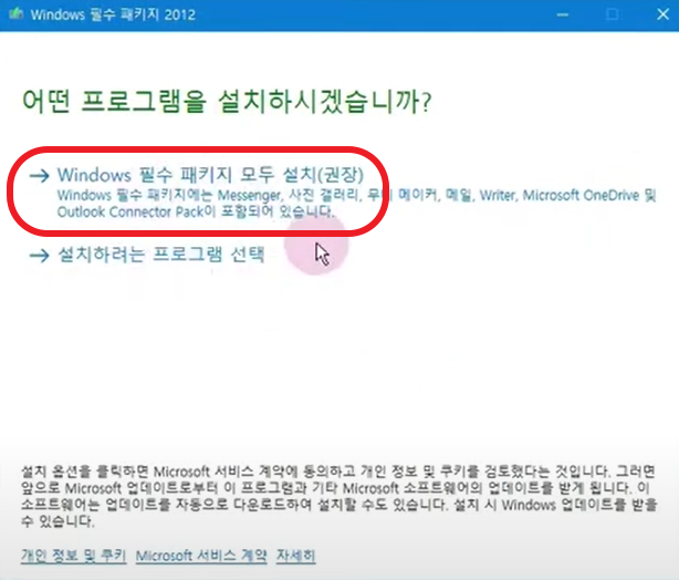 윈도우 무비메이커 한글판 다운로드 를 마치면 아래 그림처럼 실행시킵니다. 이 때 "필수패키지 모두 설치(권장)"을 눌러서 설치합니다.