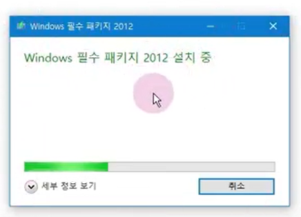 설치를 누르면 아래그림처럼 Windows 필수 패키지 설치중이라고 메세지가 뜹니다. 이 과정이 약 3-5분정도 소요가 되니까 천천히 기다려 주세요.