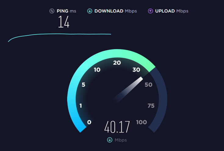그럼 광고와 함께 GO 라는 버튼이 나옵니다. 그 버튼을 클릭하면 아래 그림처럼 현재 내 인터넷속도를 측정해줍니다. 그것도 무료로요! 어때요 쉽죠? 제 경우는 40MB 의 속도를 보이고 있네요. 이 수치는 "download" 시 수치입니다.