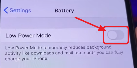 아래 그림처럼 저전력 파워 모드가 켜져있다면 반드시 꺼줍니다. 저전력 모드 파워가 켜져있으면 배터리 색깔이 초록색이 아니라 노란색으로 보이니 참고해주세요!