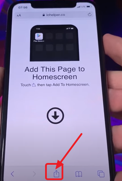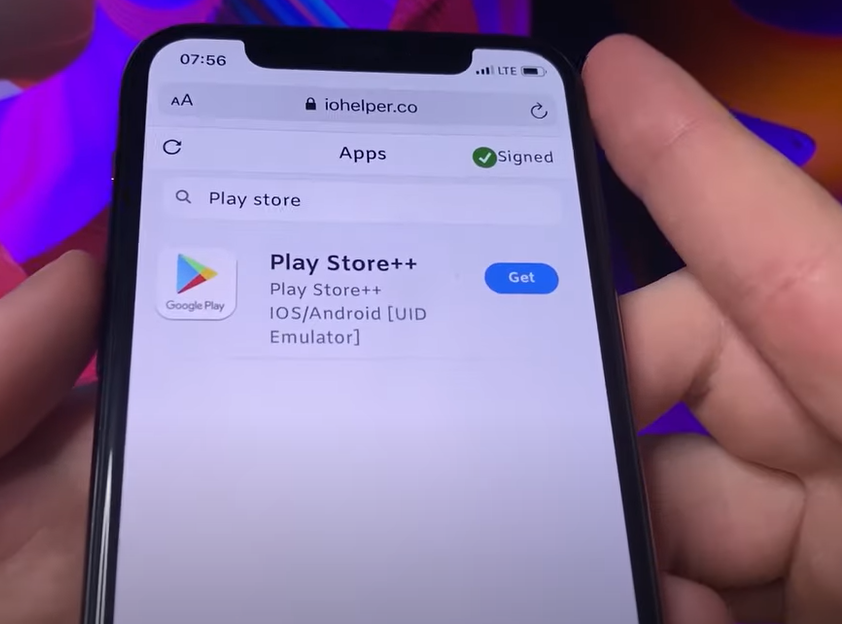 하지만 우리는 아이폰 구글 플레이 스토어 다운 을 할 것이기 때문에, 아래그림처럼 Play store 를 검색해줍니다. 그러면 저절로 play store ++라고 뜨지요? 이제 Get (다운받기) 를 클릭해줍니다. 외국사이트이니 참고해주세요~ 그러면 아래 오른쪽 그림과 같은 화면이 나타나게 될텐데, 이 때 아래쪽에 보시면 화살표 모양의 아이콘이 있는데 이것을 클릭해줘야 합니다.