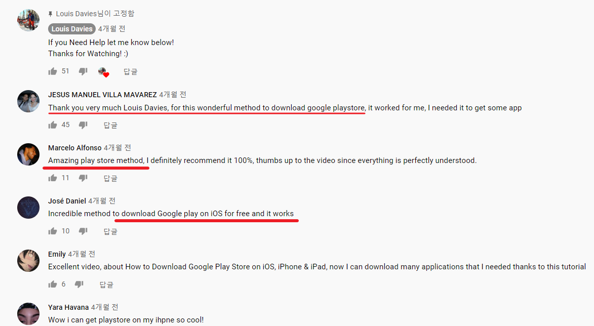 오늘은 애플 CEO인 팀쿡이 울고갈 만한 정보를 알려드리겠습니다. 아이폰 구글 플레이 스토어 설치 방법을 공유하고자 합니다. 이 방법은 무료구요, 따라만 하시면 성공할수 있도록 쉽게 설명드리겠습니다. 못믿으시겠다구요? 이미 해외에서는 많은 유저들이 이 방법을 통해 아이폰에서도 플레이 스토어 게임을 즐기고 있습니다. 아래는 그 증거 사진입니다.