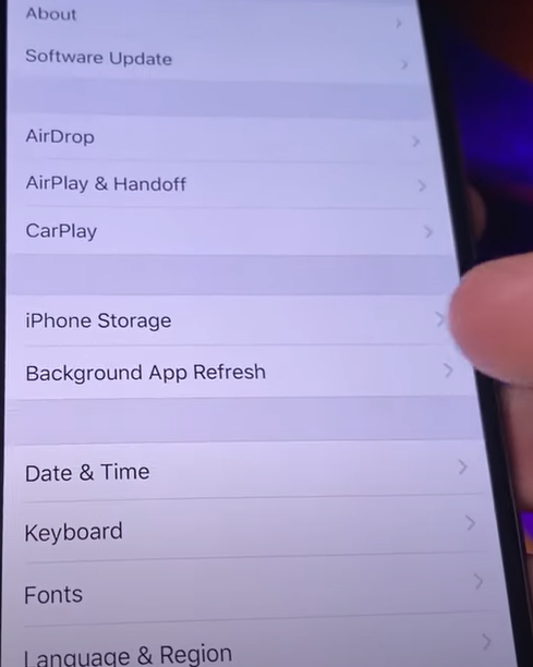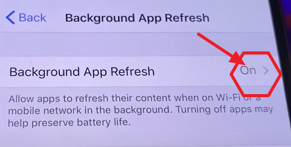 그럼 스크롤을 조금 내려 "백그라운드 앱 새로고침 (Background App Refresh)" 을 누릅니다.
