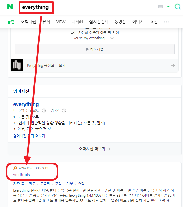 하지만 "Everything" 이라는 파일관리프로그램 을 사용하면 똑같이 검색했을 때 1초만에 컴퓨터 안의 파일을 찾아줍니다. 일단, 검색창에 아래 그림과 같이 검색하고, voidtools 라는 사이트로 들어가줍니다.